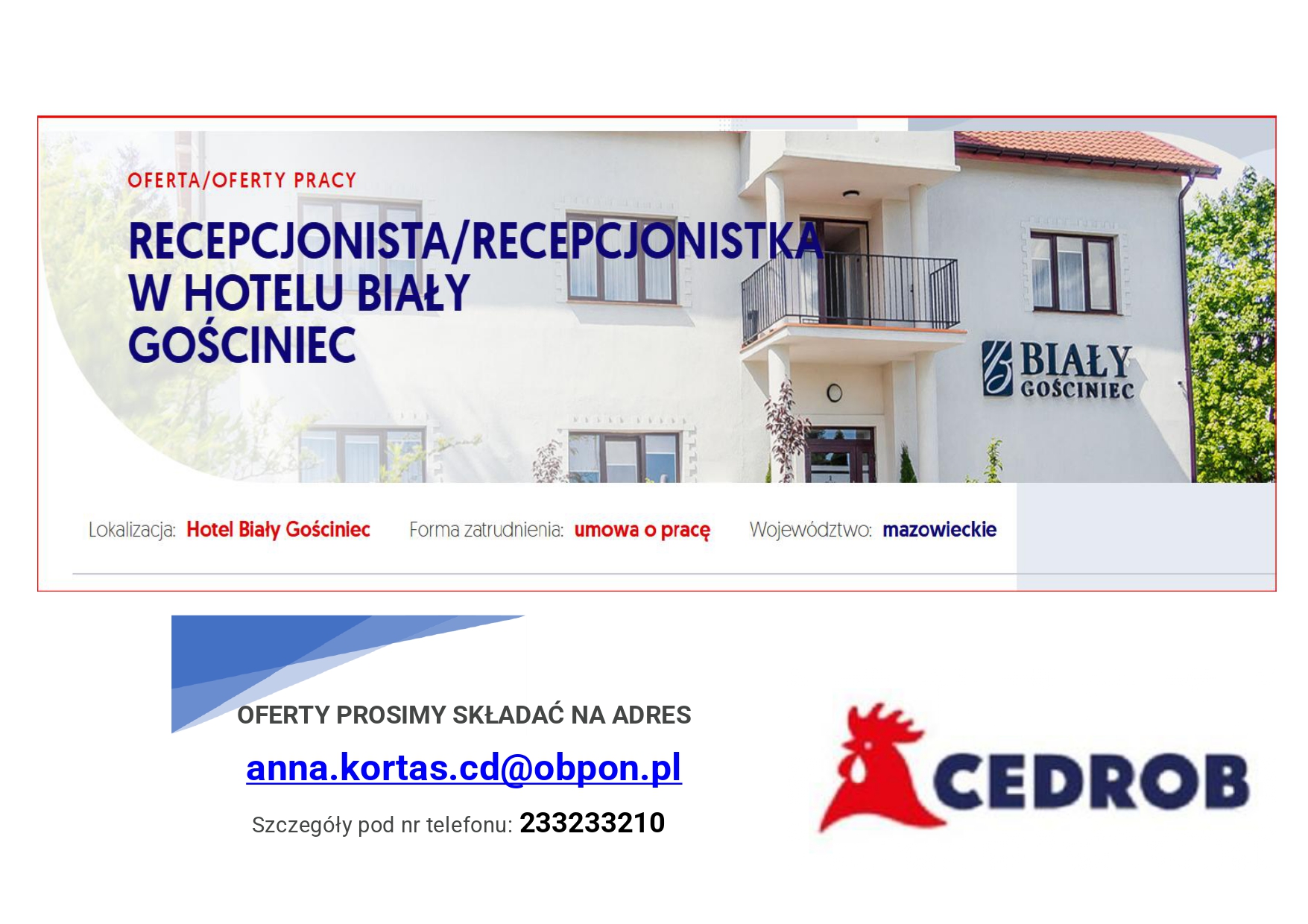 Recepcjonista/Recepcjonistka w Hotelu Biały Gościniec Ciechanów